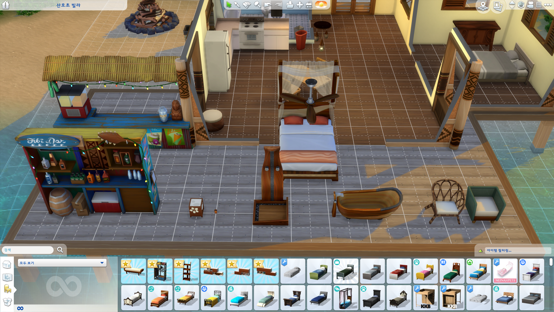 다음으로 건축 아이템들 보았는데 교통수단이 새로 생기더군요! 아직 대학팩이 없어 자전거는 없지만 카누나 스쿠터를 바다에서 타고 다닐 수 있다니. 😍