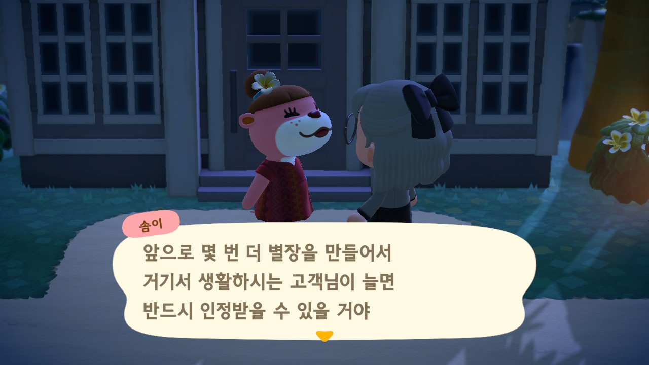 그리고 별장을 찾아가거나 이렇게 따로 말을 걸면 꾸밀 때 쓴 아이템을 받을 수 있습니다. 랜덤이니 최대한 없는 아이템으로 꾸미면 좋을 듯합니다.